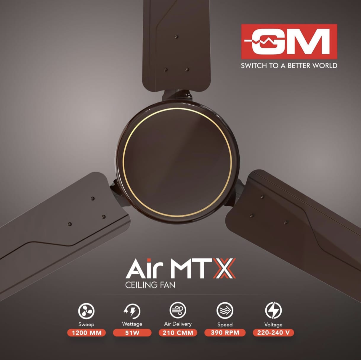 GM 1200mm High Speed Ceiling Fan for Home | BEE Star Rated Energy Effiecient Fan Engineered for Summer Comfort | 390 RPM High Air Delivery | 2 Years Warranty (BROWN)